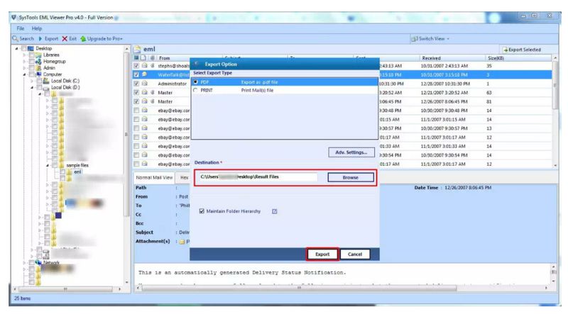 Étape 5. Convertir les e-mails en cliquant sur le bouton "Exporter".