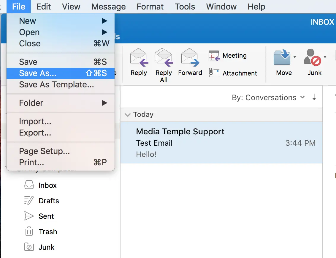 Tutte le versioni di Outlook a partire da Outlook 2010 possono aprire file con questa estensione. Tuttavia, solo Outlook Express (ora obsoleto) e Outlook per Mac consentono l'esportazione diretta in EML. Questo processo è piuttosto semplice. Dopo aver aperto l'app su Mac, devi: